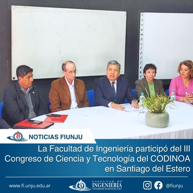 La Facultad de Ingeniería de la Universidad Nacional de Jujuy (UNJu) fue sede del Consejo de Decanos de Ingeniería del Noroeste Argentino (CODINOA), una reunión que congrega a los máximos representantes de las Facultades de Ingeniería de las Universidades Nacionales del NOA. Este consejo, que se formó durante la reunión anual del Consejo Federal de Decanos de Ingeniería (CONFEDI) en 2005 en la provincia de Jujuy, celebró su encuentro el pasado viernes en el Salón Éxodo del Cabildo de la provincia.